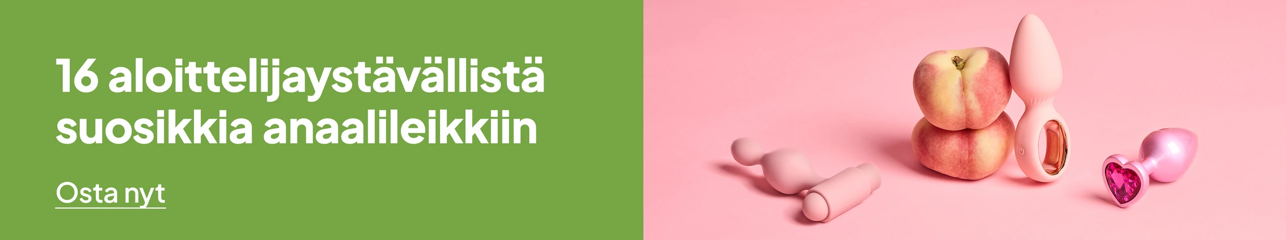 Jos aiot aloittaa kokeilut anaalistimulaation parissa, meiltä löydät laajan valikoiman juuri sinulle sopivia anaaliseksileluja. Suosittelemme aloittamaan varovasti, esimerkiksi pientä miesten anustappia käyttäen. Ennen leikkejä voit puhdistautua anaalisuihkulla ja muista ehdottomasti myös liukuvoide.